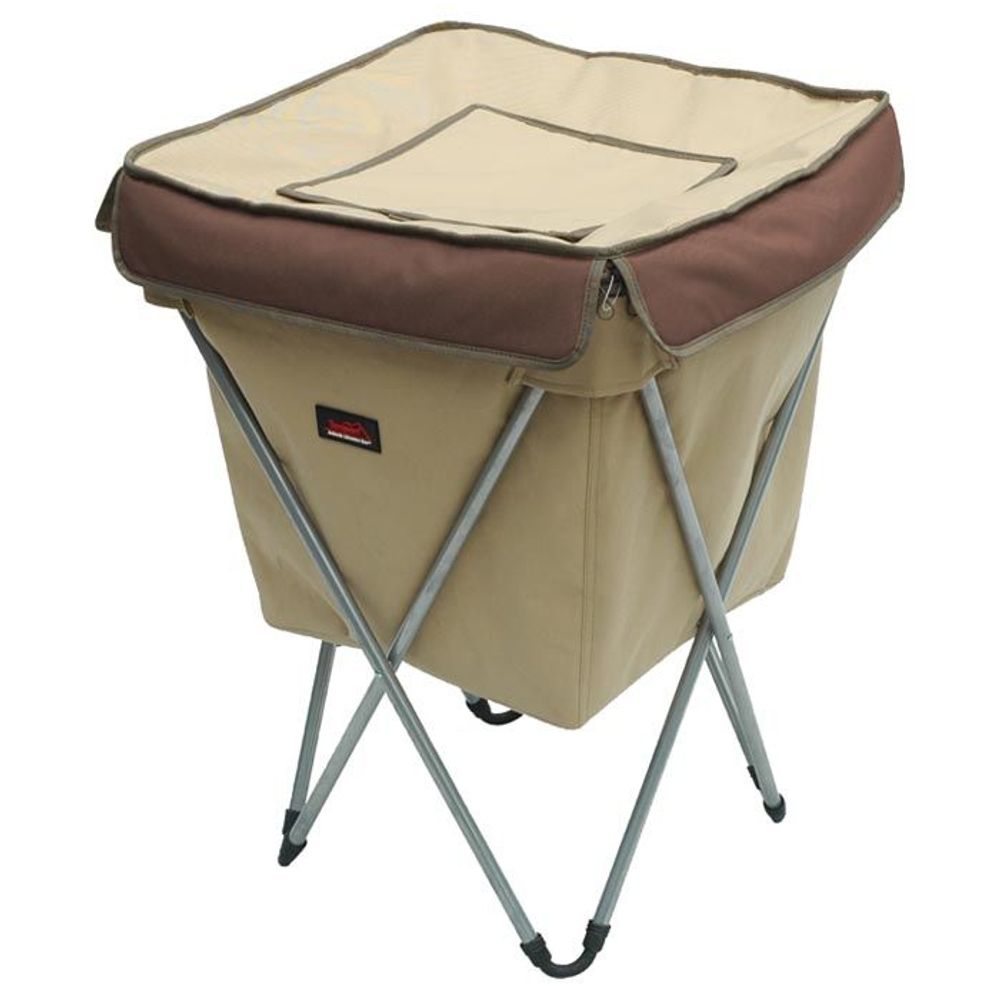 Constructed of 500 denier polyester fabric with lead-free polyethylene coating. Easy access Velcro lid. Bottom spigot for easy draining. This Texsport adventure gear cooler collapses for easy storing. Warm sand/brownie color combination.