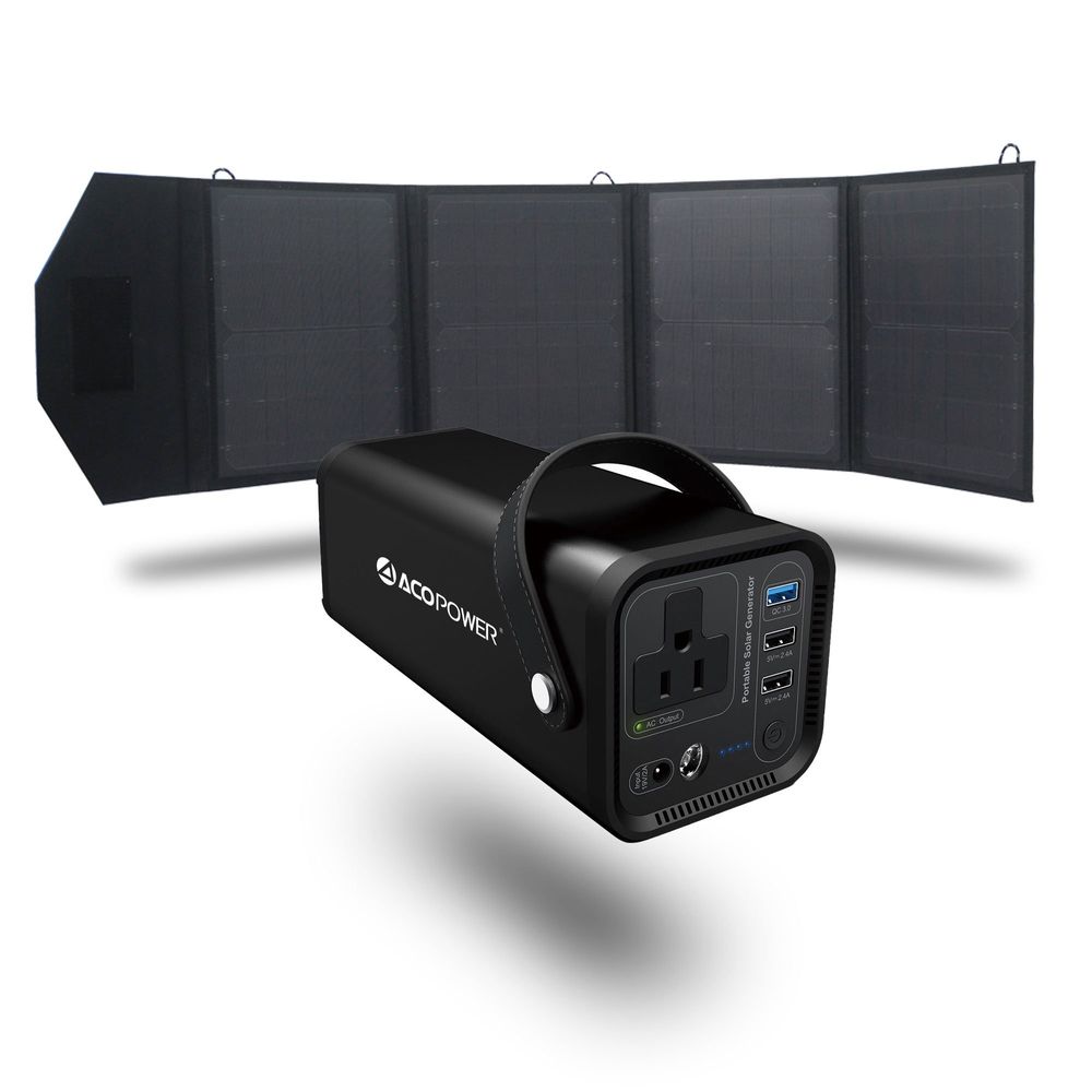 ACOPOWER Kit Includes: 1x 154wh Solar Generator and all its accessories; 1x 50W Foldable Solar Panel (Charge Controller is not included)