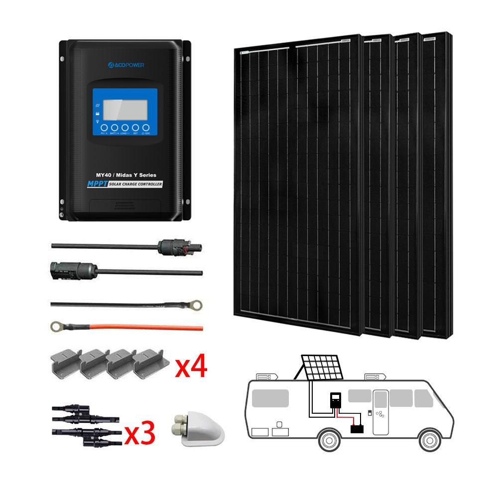 ACOPOWER 400W All Black Mono Solar RV Kits with 40A MPPT Charge Controller