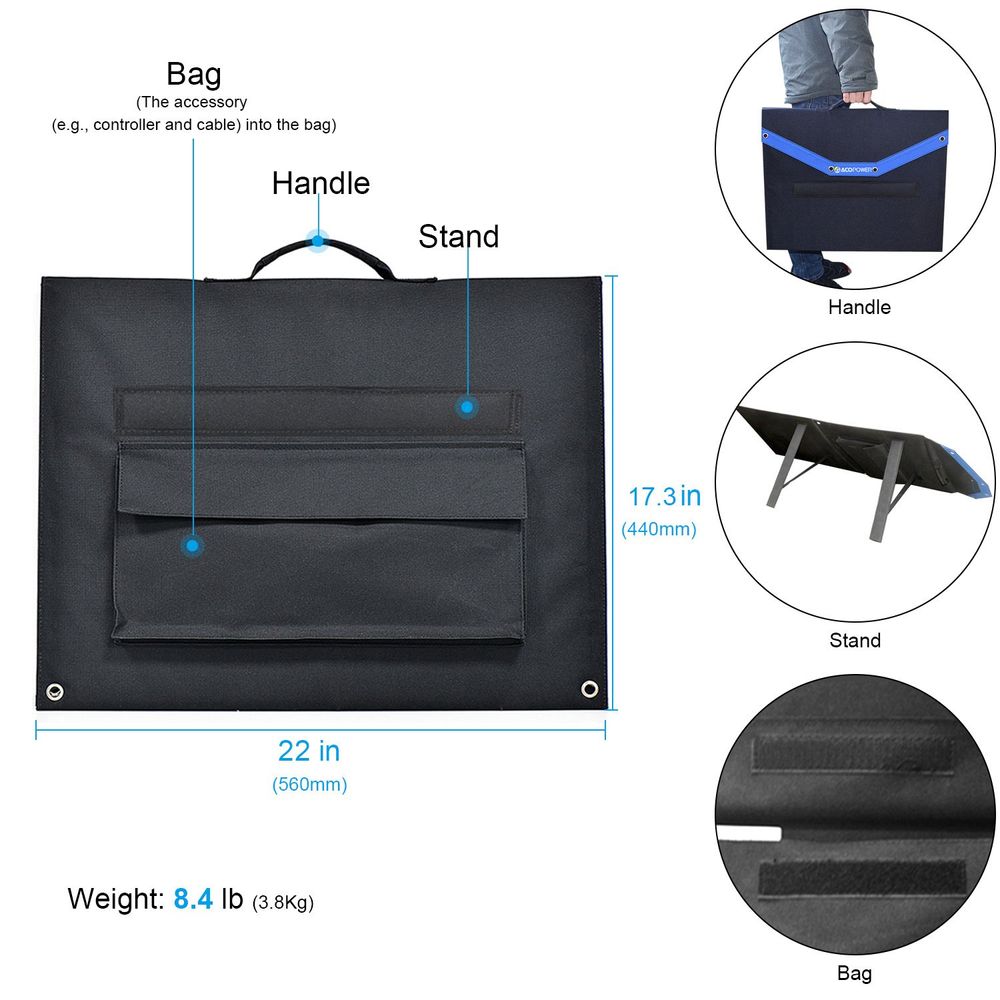 ACOPOWER Kit Includes: 1x 400wh Solar Generator and all its accessories; 1x 105W Portable Solar Panel (Charge Controller is not included)