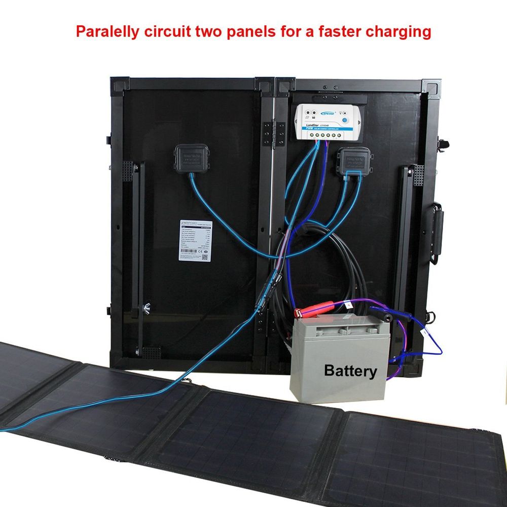 60W Foldable Solar Panel- 2 pieces Folding 30W high module conversion efficiency Grade a Mono-crystalline Solar panels with 10A charge controller, enable it two choices to work as a battery ready kit or a generator ready kit or both.