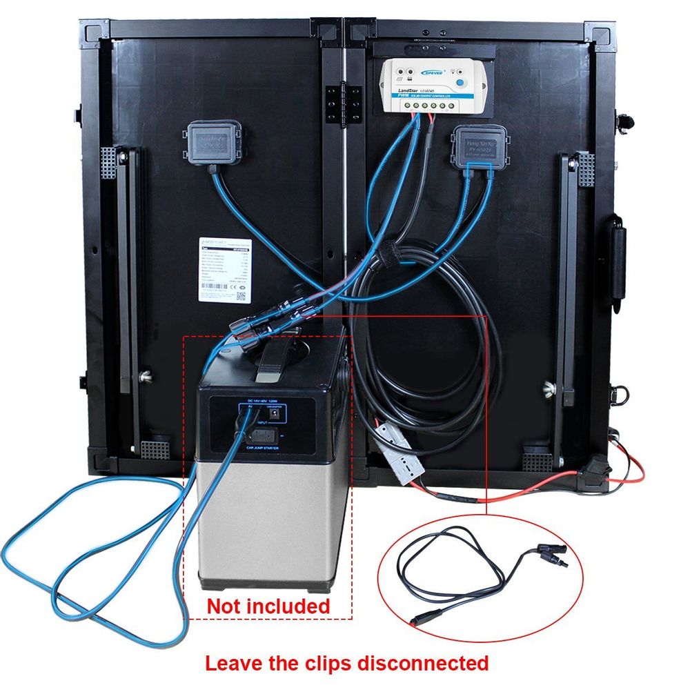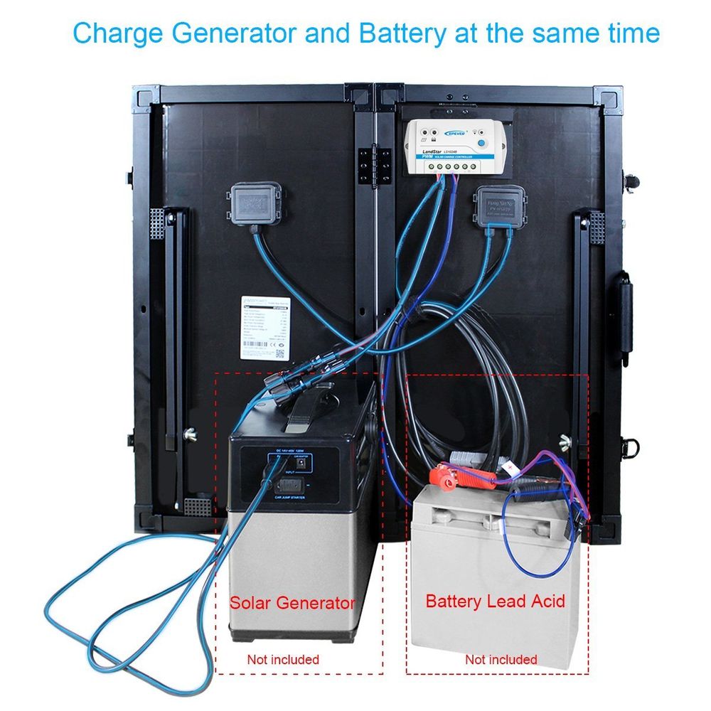 - For generator, connecting with MC4 heads; for 12V Car or Marine batteries (Sealed, GEL, Flooded) clamping the alligator clips; for both, do both and it could keep charging them at the same time.