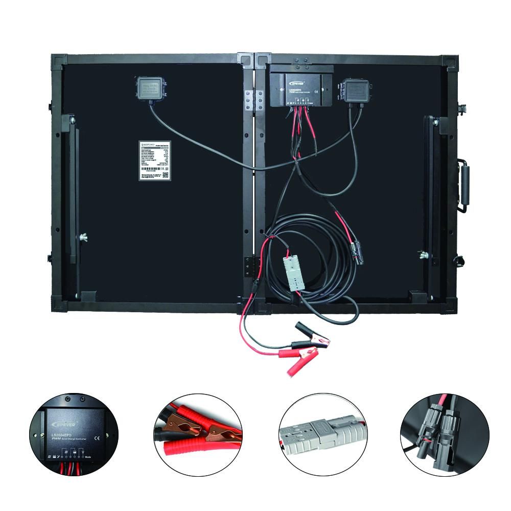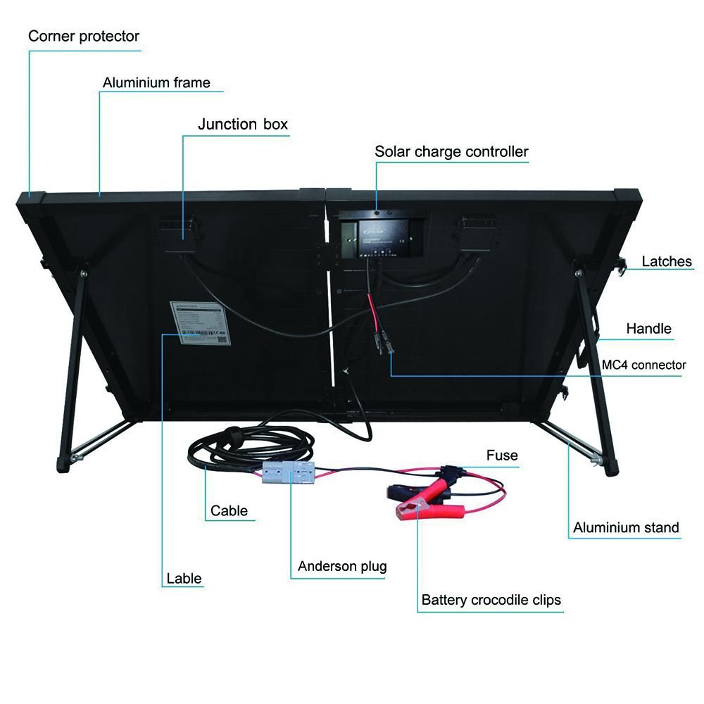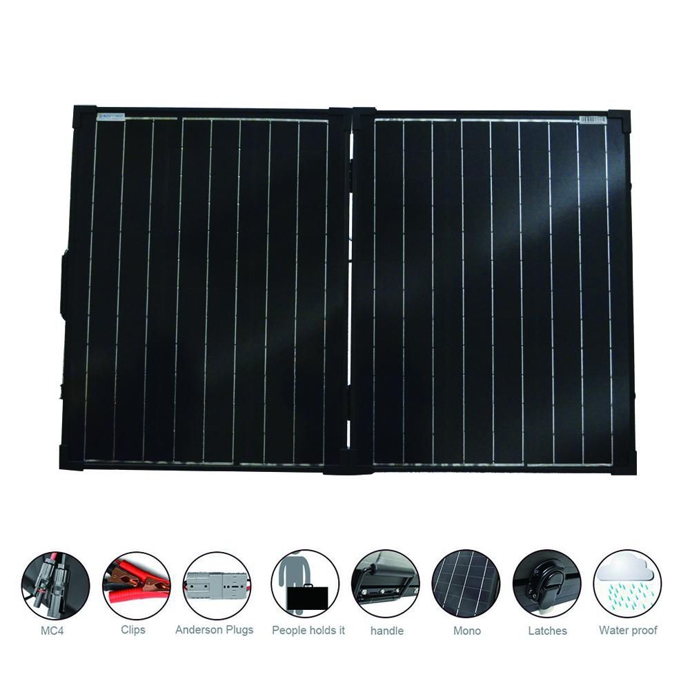 - Two 50 watts solar panels attached in pairs for portability. Case design facilitates transportation and helps keep solar panel safe when storing