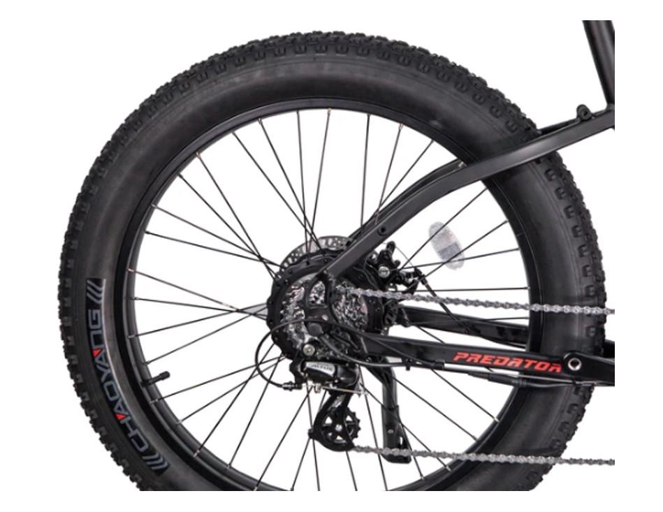 The CiviBikes PREDATOR 500W All Terrain Fat Tire Electric Bike has the power you need to endure the toughest terrains. Power, suspension, and versatility, all in one bike. The PREDATOR 500W offers: