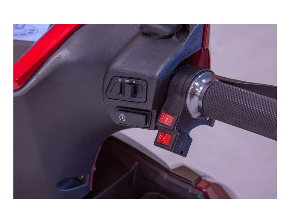 Equipped with an advanced electronic remote key fob on/off function, alarm system, secure under-seat storage compartment, and a lockable rear storage box.Â