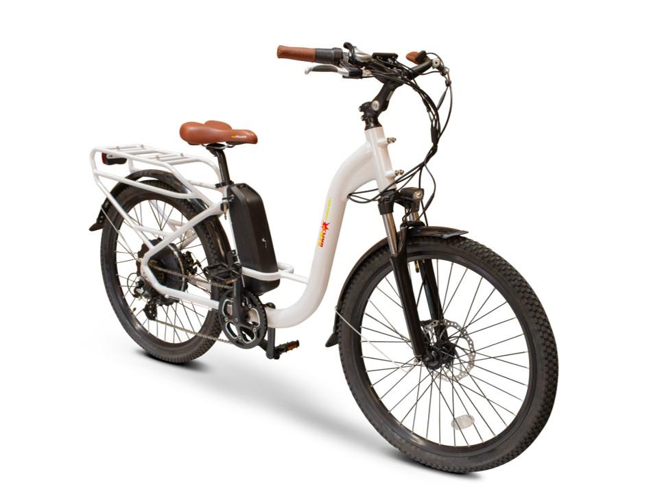 Getting around town has never been easier, or more fun, than with the BAM-StepThru electric bike. It’s perfect for ditching the car and getting a healthy commute to work without working up a sweat, trips to the store or just taking a casual ride with friends. The velo plush seat and relaxed riding position make it a super comfortable ride and the included rear rack makes it easy to attach panniers or baskets for carrying your load without stressing your back.