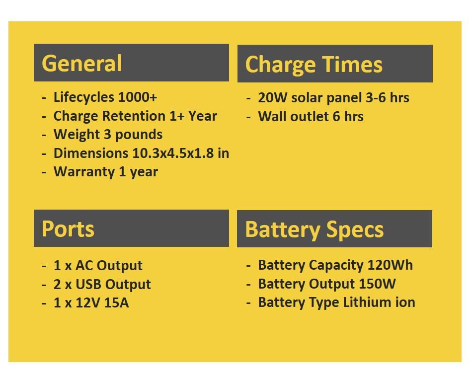 - Multi Output options | AC, USB, and DC 12V