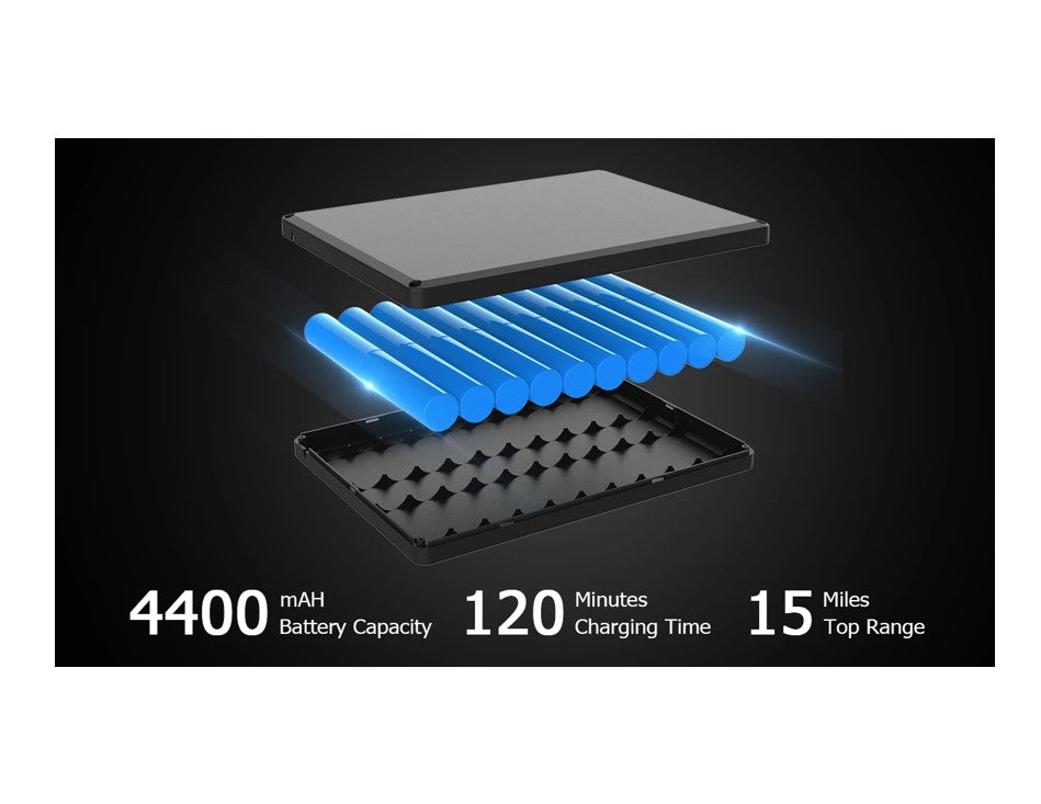 With 158.4Wh custom BMS Samsung lithium-ion battery, whose capacity up to 4.4Ah and maximum riding distance up to 15 miles, Max2 PRO has incredible durability and range.