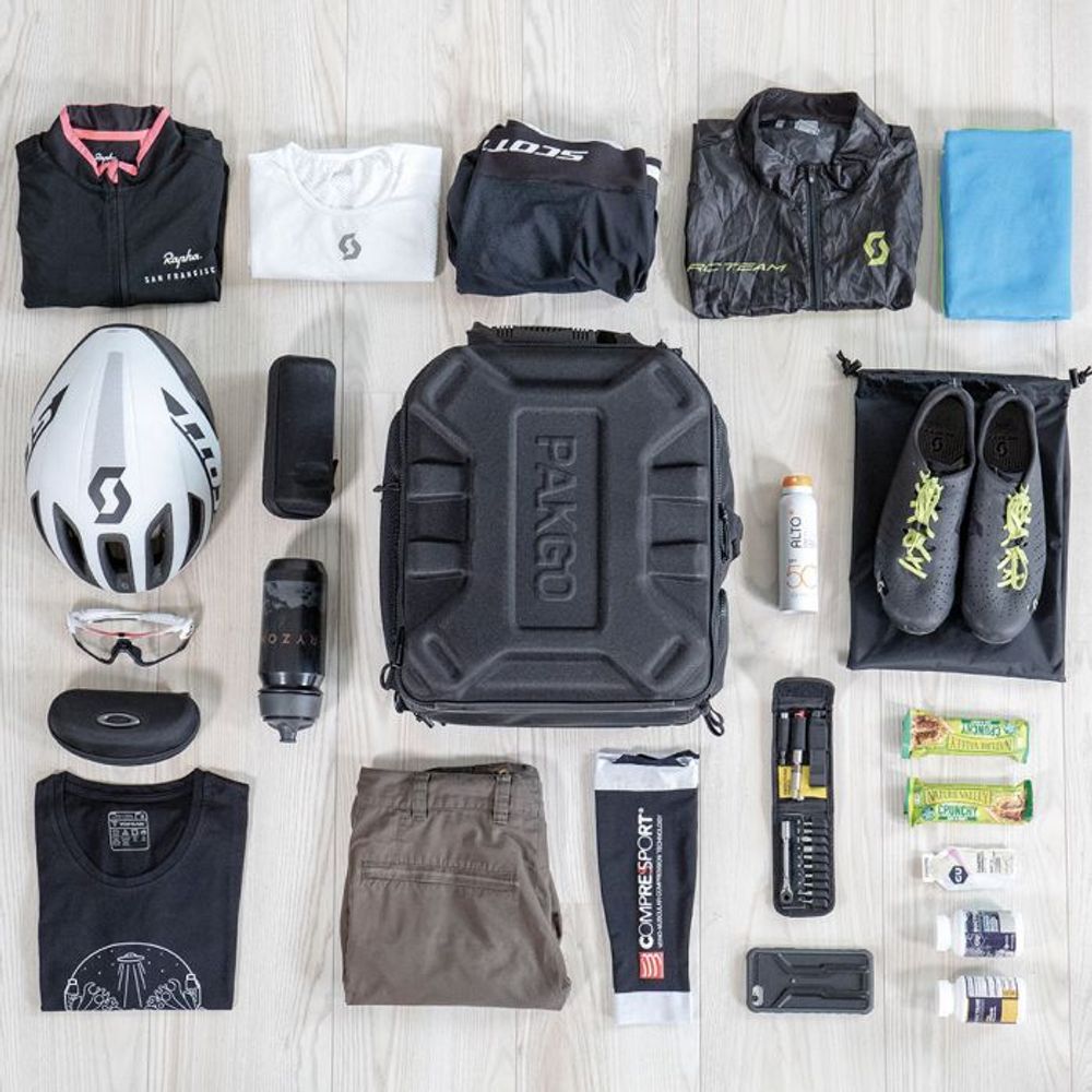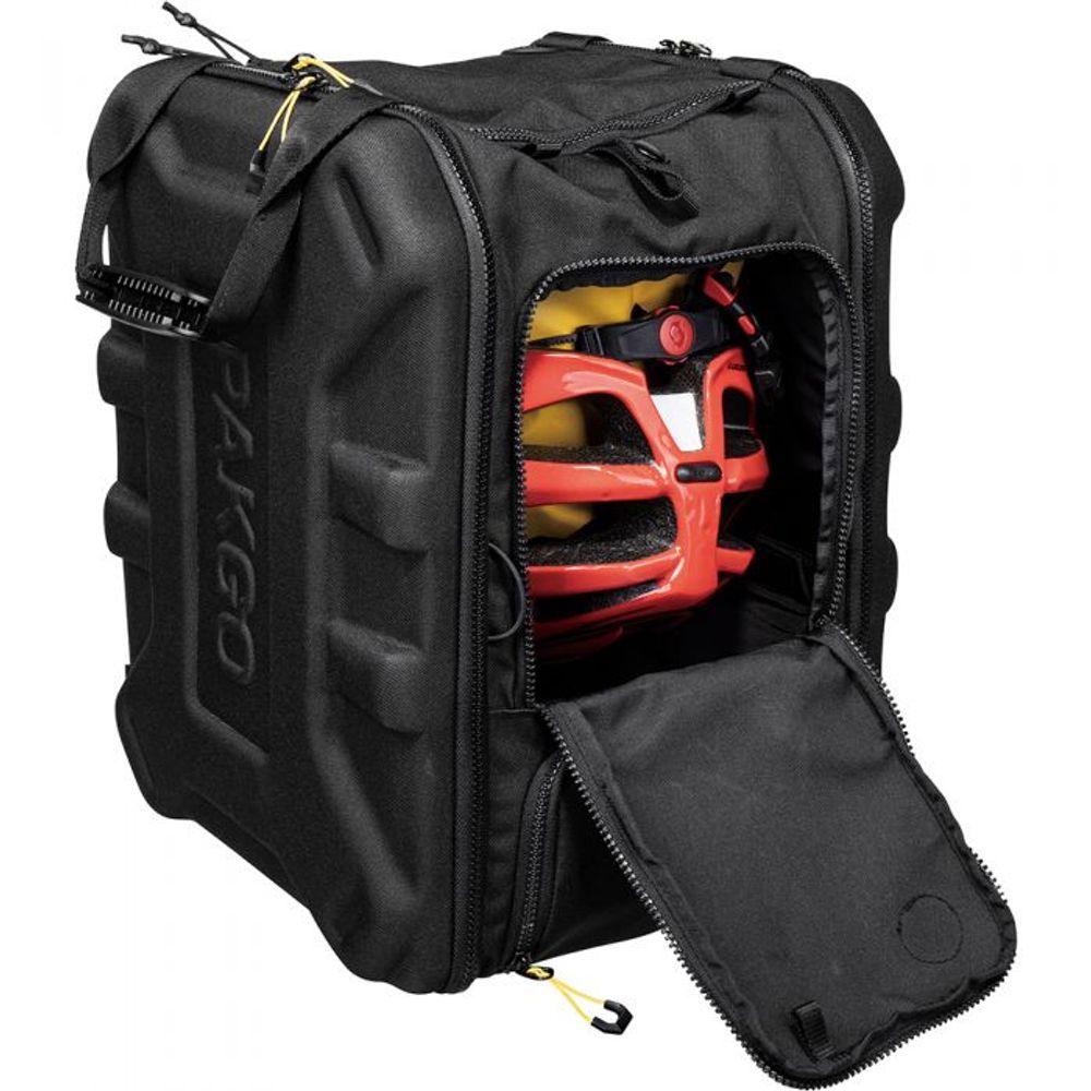 Carry all your cycling gear in one easy-to-pack bag when you head out for your riding adventure. The hard shell pack features five divided compartments and keeps your helmet, cycling and post riding clothes, water bottles, and more neatly organized.