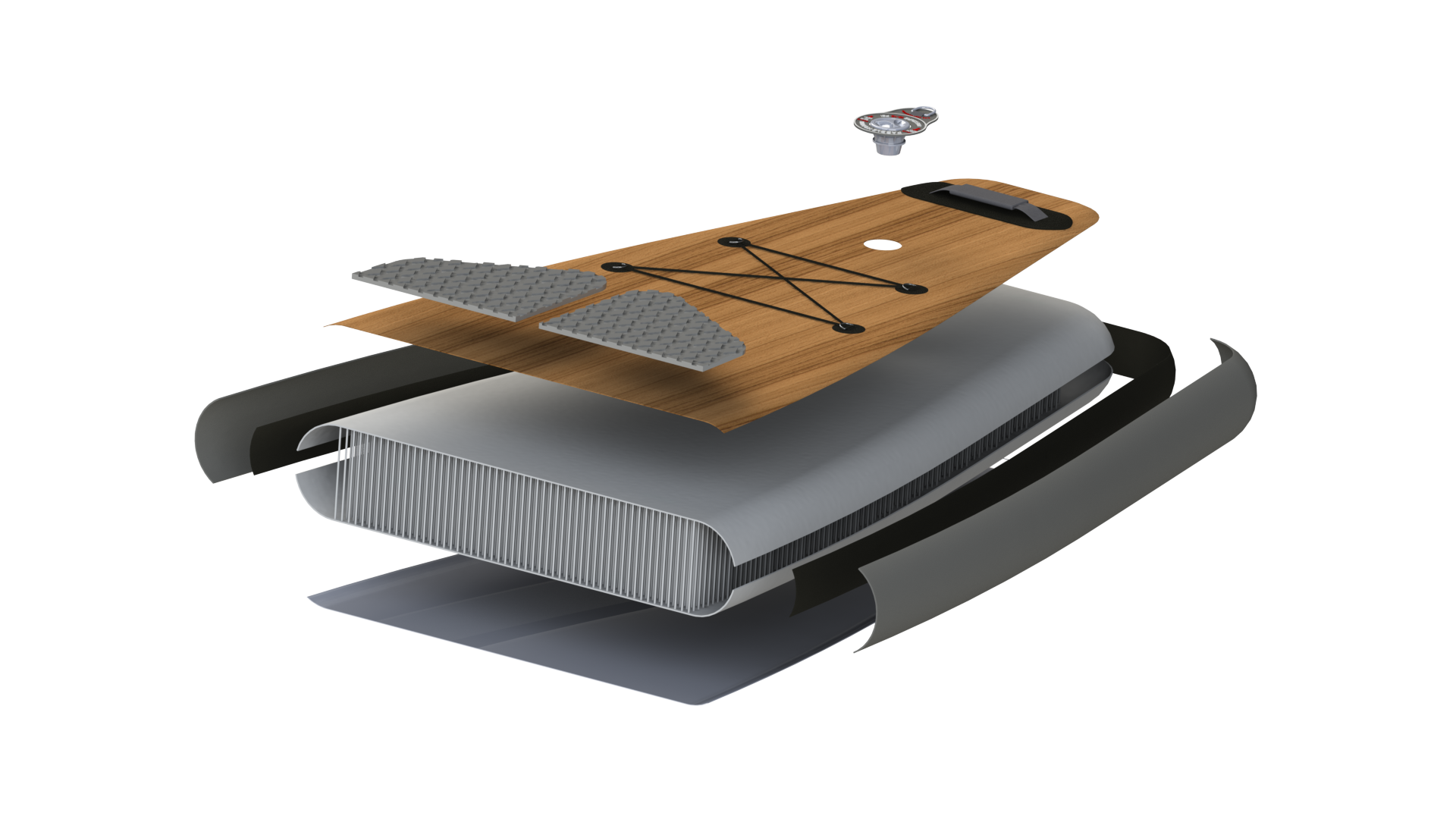 Inflatable boards naturally sit higher on the water, which can have a negative impact on the boards tracking performance. We've counteracted this by adding in the must-have displacement hull nose shape. This nose cuts the water and increases the boards speed and tracking performance.