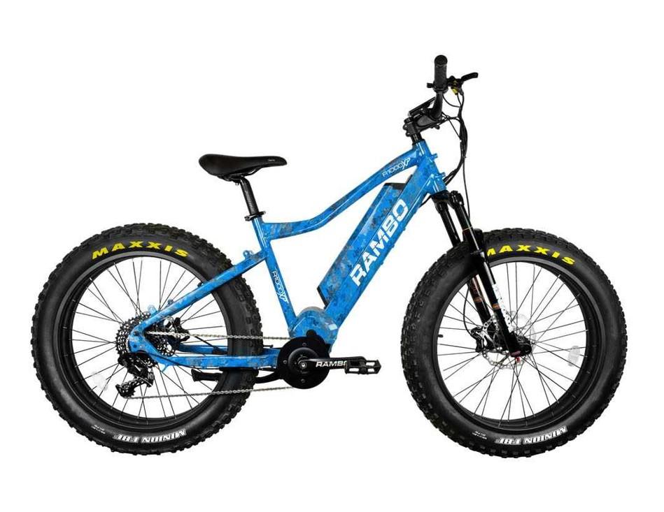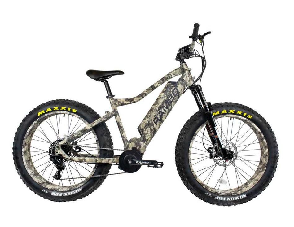 The Rambo Rebel 1000W Xtreme Performance electric fat tire bike is designed by customer request for the Extreme Rider that will only settle for the best. Big game hunting the backwoods in steep grade conditions, trail riding in rough terrain, or cruising down the beach the 1000 XPC has the job covered with high end RST Renegade suspension, a 1000W extreme performance motor, and all the high-end bike components to match. No costs were spared to build the most extreme off-road fat bike. The frame is TrueTimber Viper Western Camo for both concealment and looks. And the Rambo Rebel 1000W True Timber Viper Western Camo Xtreme Performance features a custom-built frame to encase and heighten the motor for increased ground clearance and protection. The Rambo Rebel 1000W TrueTimber Viper Western Camo Xtreme Performance electric fat tire bike won’t disappoint you!