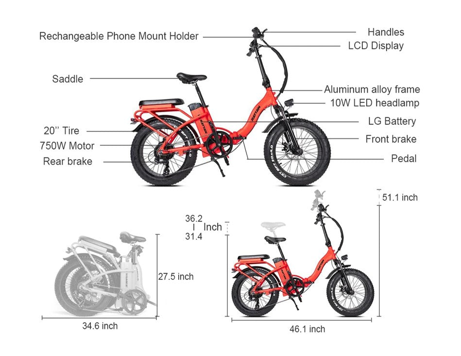 Rattan LF 750W Fat Tire Folding Electric Bike