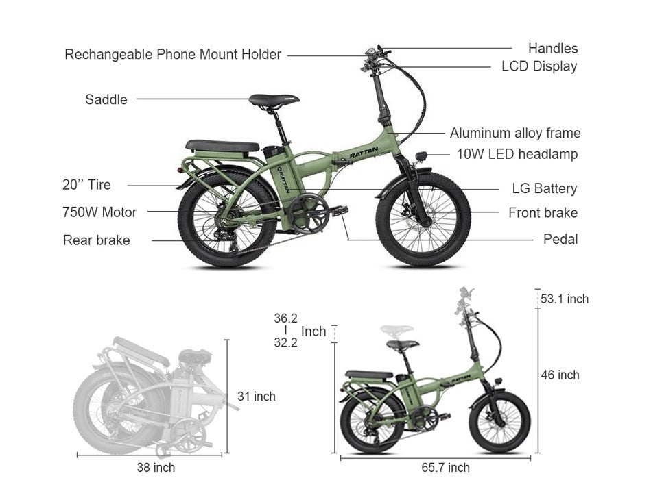 Rattan LM 750W Fat Tire Folding Electric Bike