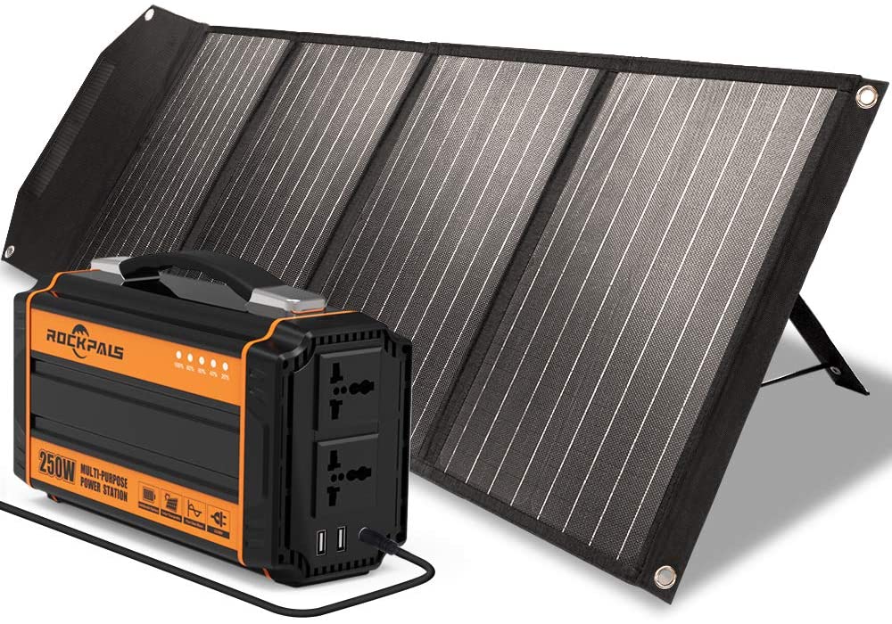 Rockpals 250W Portable Power Station with 100W Foldable Solar Panel Kit