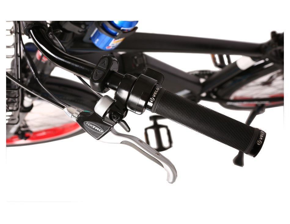 Front & rear Tektro disk brakes are standard on the Laguna Beach Cruiser 48 Volt Lithium Powered Electric Bicycle along with true VELO Brand Hand Grips & over-sized comfy beach cruiser seat with dual springs to soften your ride!